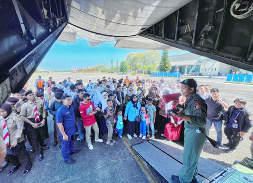 Sortie pertama dengan Captain Pilot Lettu Pnb Tegar dengan membawa 138 orang. Sortie kedua dan ketiga diterbangkan oleh Captain Pilot Kapten Pnb Rossy dengan membawa masing-masing 148 dan 158 orang. Sedangkan Sortie keempat diterbangkan oleh Captain Pilot Letkol Pnb Ave yang merupakan Komandan Skadron Udara 33 Lanud Sultan Hasanuddin dengan membawa 216 orang.