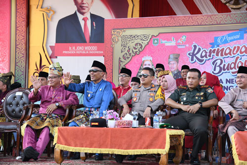 BENGKALIS - Karnaval Budaya Pesona Negeri Junjungan yang digelar dalam rangka memeriahkan Hari Jadi ke-512 Bengkalis berlangsung meriah.