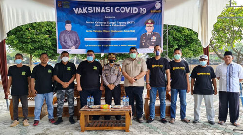 PEKANBARU, kabarmelayu.com - Ikatan Keluarga Sungai Tapung ( IKST ) Riau yang merupakan sebuah Organisasi Sosial Kemasyarakatan yang berdiri di Pekanbaru sejak tahun 1957 bekerja sama dengan Polresta Pekanbaru mengadakan kegiatan Vaksinasi Covid 19 yang berlokasi di halaman Masjid Nurul Iman Jl Meranti Kecamatan Senapelan pada Sabtu (6/10).