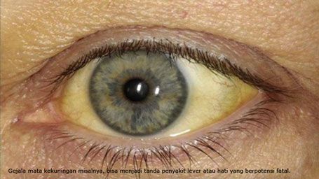 2. Menguningnya kulit dan bagian putih mata (jaundice).