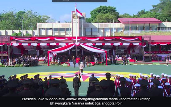JAKARTA - Presiden Joko Widodo atau Jokowi menganugerahkan tanda kehormatan Bintang Bhayangkara Nararya untuk tiga anggota Polri yang dinilai telah berjasa besar dalam menjalankan tugasnya.