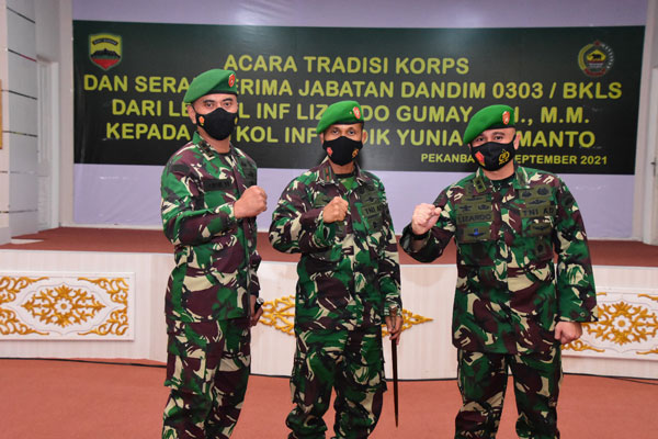 Sertijab yang dilaksanakan, Sabtu (4/8) di Balai Pauh Janggi Gedung Daerah Riau, Pekanbaru tersebut, adalah Komandan Kodim (Dandim) 0303 Bekalis, yang sebelumnya dijabat Letkol Inf Lizardo Rumah SH MM, kepada Letkol Inf Endik Yunus H, yang sebelumnya menjabat Wadandenmadam I/BB.