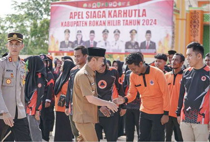 ROHIL - Bupati Rokan Hilir (Rohil) Afrizal Sintong, SIP, M. Si secara langsung memimpin apel siaga Karhutla tingkat Kabupaten. Apel siaga Karhutla tersebut dilaksanakan di Taman Budaya Batu Enam, Bagansiapiapi, Selasa (19/3/2024).