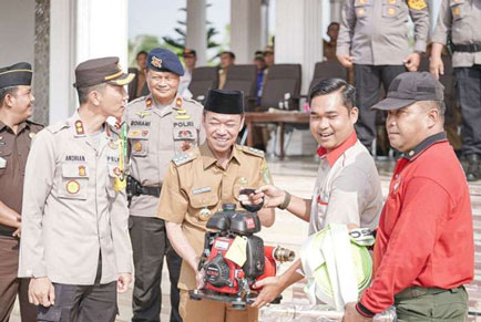 "Apel siaga darurat penanggulangan kebakaran hutan dan lahan ini dilaksanakan untuk memastikan kesiapan satgas penanggulangan kebakaran hutan dan lahan baik peralatan maupun personil dalam menjalankan tugas bersama ini," sebut Bupati.