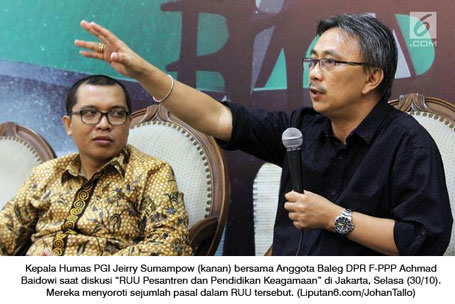 Sementara Kepala Humas Persekutuan Gereja-Gereja di Indonesia (PGI) Jeirry Sumampow mengungkapkan ada kekeliruan terkait tulisan tentang agama Kristen Protestan dan Katolik pada buku PPKn untuk SMP Kelas VII tersebut.