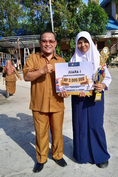Dalam lomba ini, UPT SMPN 4 Siak Hulu hanya mengirimkan satu nama untuk mengikuti perlombaan menulis resensi buku ini. "Dan alhamdulillah, Andryka Khairunnisa berhasil mendapatkan Juara I," ujar M. Hujani.