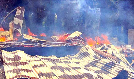 Ketika si jago merah mengamuk, pemilik rumah sedang belanja ke pasar dan suami bekerja di kebun.
