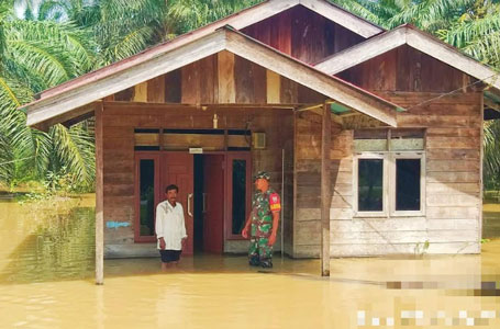 Bintara Pembina Desa (Babinsa) Koramil 10 Kunto Darussalam Kodim 0313/KPR Peltu M. Sitepu mengatakan, prosen belajar mengalihkan siswanya belajar di kantin milik warga karena ruang kelas di genangi banjir.